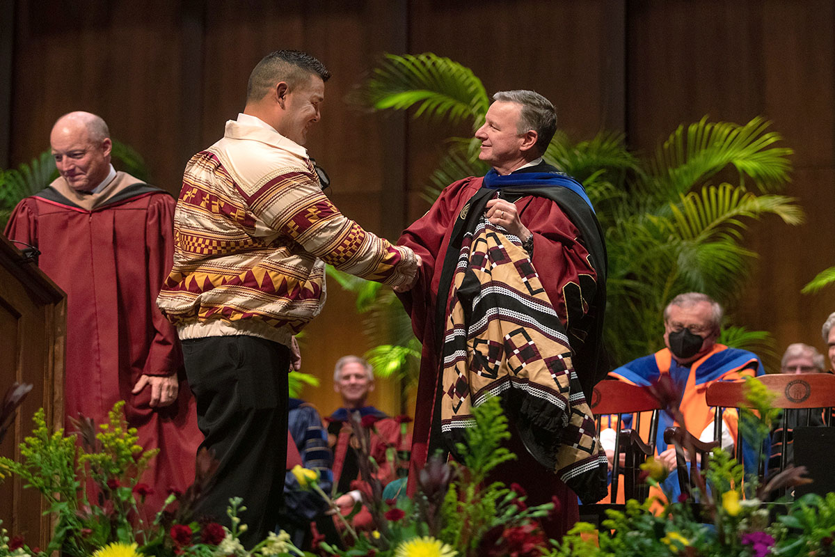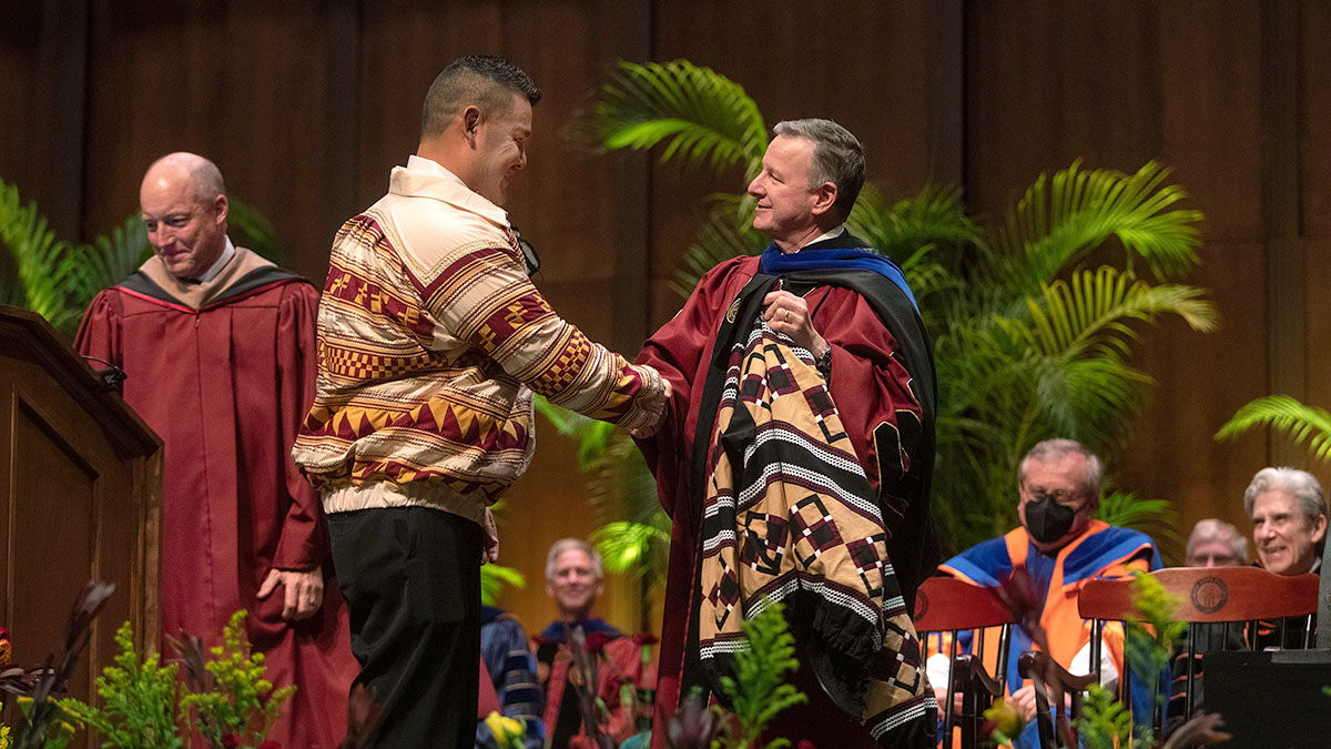 "Florida State University honors its unique and collaborative friendship with the Seminole Tribe of Florida. This university is not only located on the ancestral and traditional homelands of the Seminole Tribe, but we are also entrusted by the Tribe with the rare honor and responsibility of calling ourselves the 'Seminoles.' Among much else, this forms our solidarity with the Seminole Tribe, unconquered Peoples, whose power inspires all activities at the university." — Richard McCullough, President