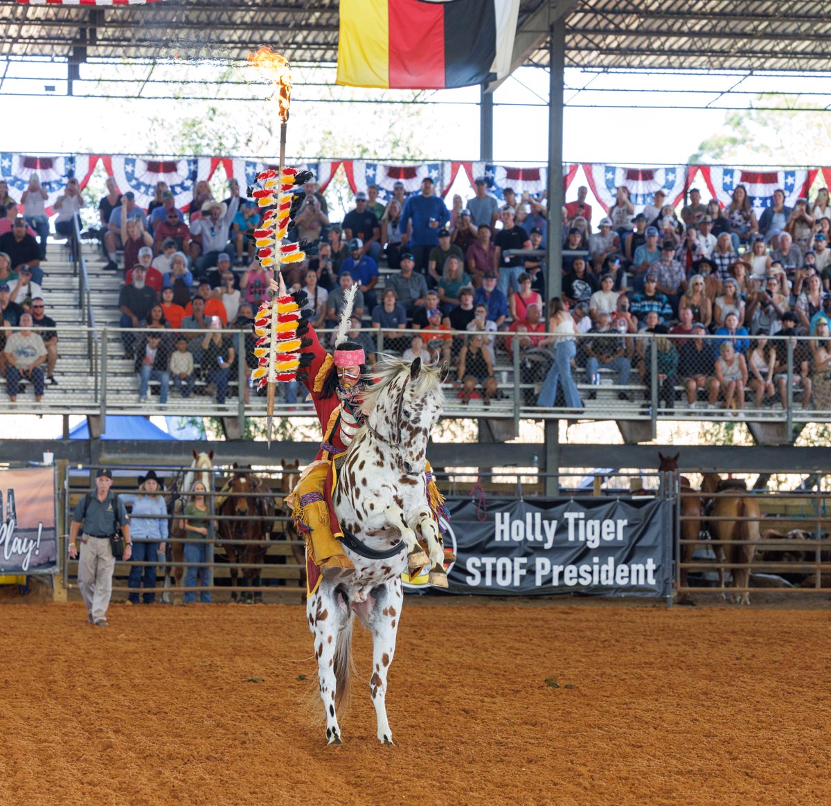 FSU pays tribute to the resilience and courage of the Florida Seminoles when it refers to and represents the Seminole name and other symbols such as Osceola and Renegade. The Florida Seminoles are our partners, not our mascots. The Seminole Tribe of Florida ensures that any display of its culture and symbols are consistent with both the Tribe’s and the university’s values. Seminoles design and create the authentic apparel worn by the FSU students portraying Osceola. These appearances adhere to the official wishes of the Seminole Tribe of Florida. As partners, we engage in continuous conversation regarding this symbolic representation.