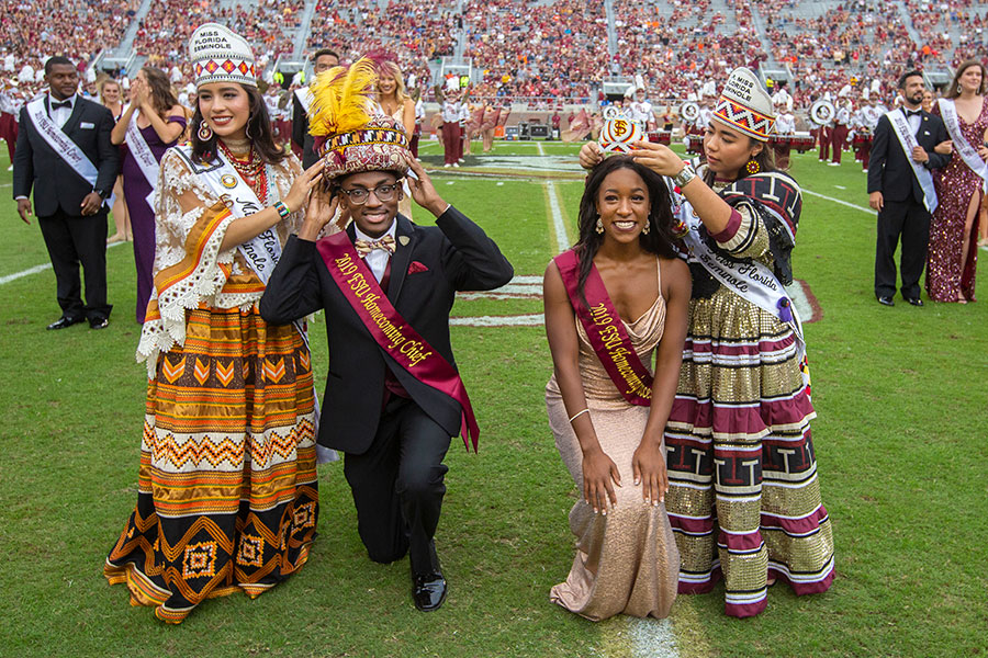 In 1972, for the first time, Florida Seminoles attended homecoming festivities as official representatives of the tribe. The delegation included Miss Florida Seminole, an official spokeswoman for the tribe, who has crowned the homecoming court at FSU ever since. The annual delegation has typically included elected Tribal officials (usually the chairman or chairwoman) as well as family members of Miss Florida Seminole and now Jr. Miss Florida Seminole.