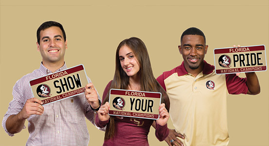 Proudly display an FSU license plate on your vehicle(s).